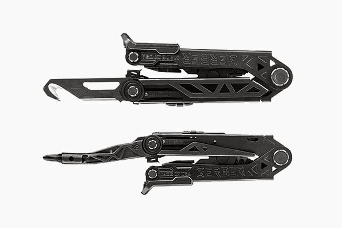 The Gerber Center-Drive Rescue offers uncompromising performance through revolutionary design, now with a one-hand opening strap cutter. Features 14 tools and a Berry-compliant sheath.