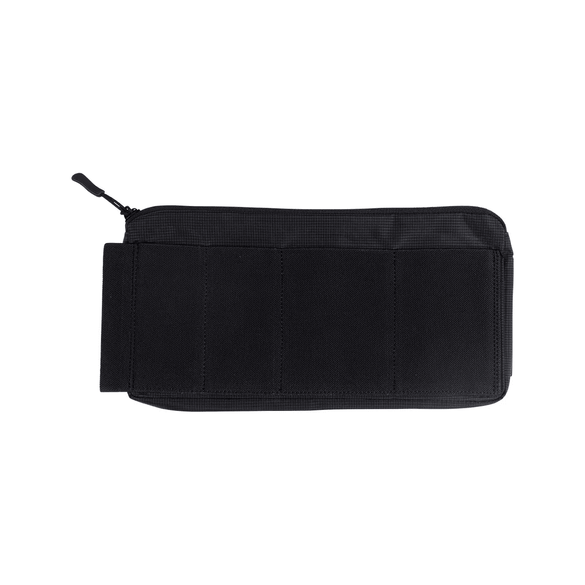 A Velcro backed admin pouch with a zippered main compartment and multiple external elastic loops. Ideal for organizing EDC gear like a small med kit, tech accessories, or any other essential daily carry needs.