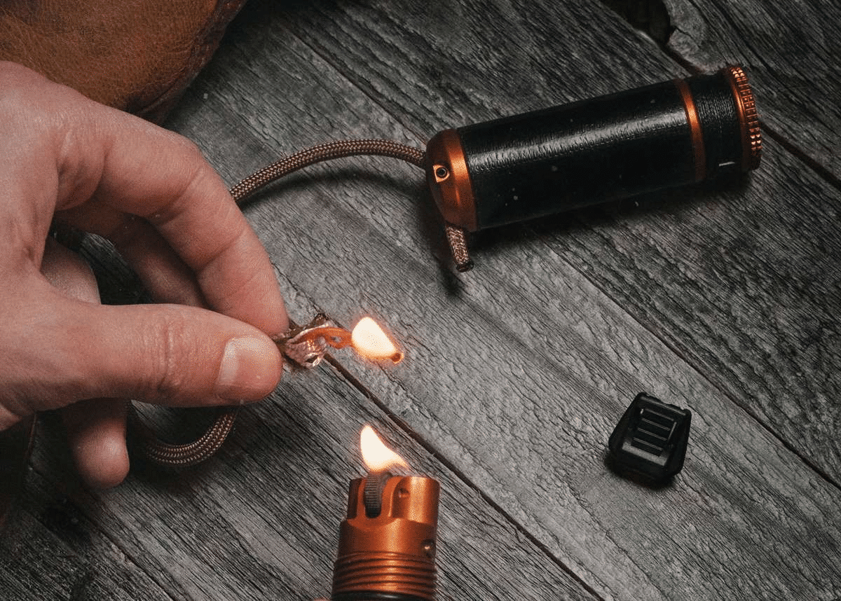 Firecord™ Lanyard – The included lanyard has an inner (red) core that can be pulled out and used as tinder. It burns like a candle wick and can be lit with any lighter, match or ferro fire starter.