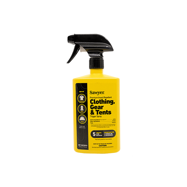 Odorless after drying, Sawyer Permethrin Fabric Treatment can be used to treat a variety of fabrics like clothing, gear, and tents. A successful application of this insect repellent treatment is effective against mosquitoes and ticks for 6 weeks or 6 washes.
