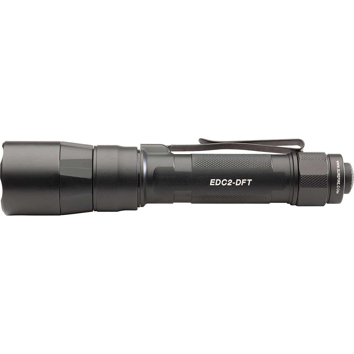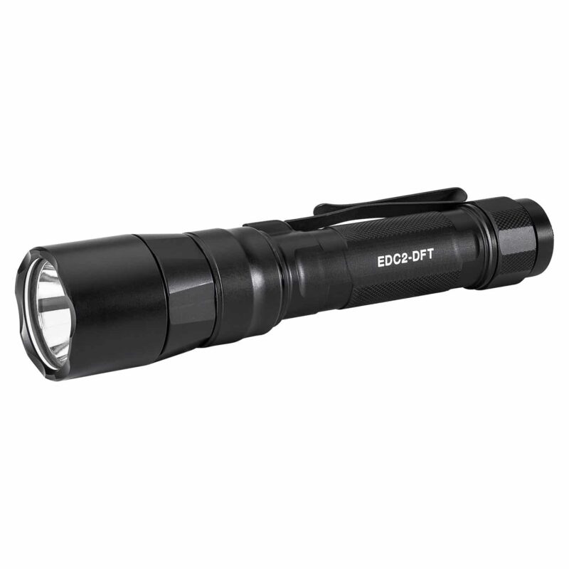 The SureFire EDC-2 DFT Turbo’s precision engineered, smooth parabolic reflector produces a high-candela, far-reaching beam on high-output ideal for positive identification at long distances. The rugged Mil-Spec hard-anodized aluminum body and tailcap are knurled for a secure grip in wet or dry conditions. A sturdy two-way, black oxide-finished clip permits easy bezel-up or bevel-down carry.