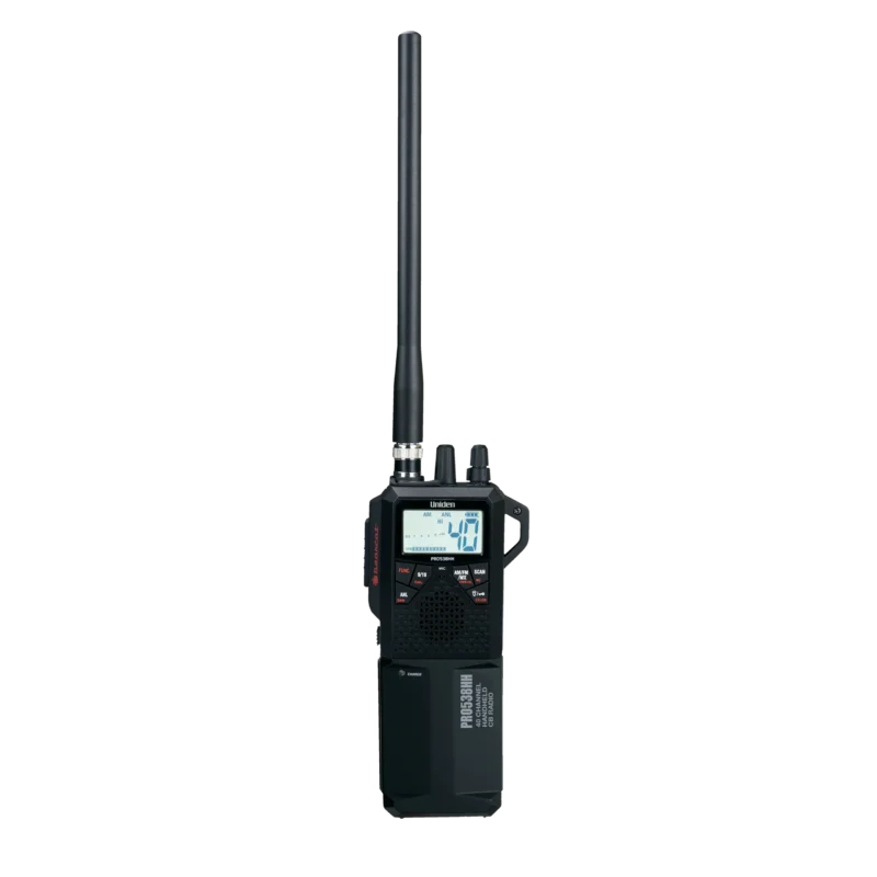 The Uniden PRO538HHFM is a full-feature AM/FM handheld CB radio that can operate efficiently from inside a vehicle using an in-vehicle adapter . It allows connection to a full-size mobile antenna for the longest range possible (not included). It comes with a large, dual-color LCD screen (white for day, orange for night).